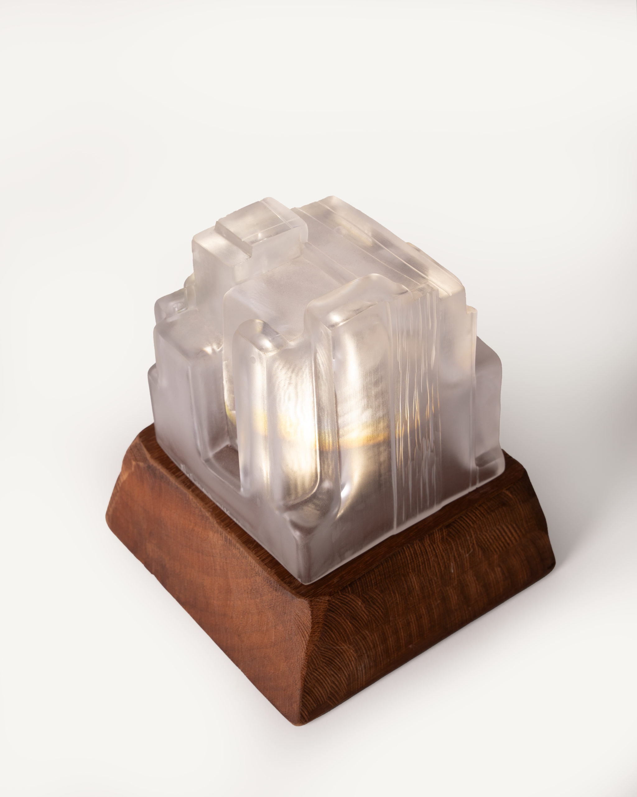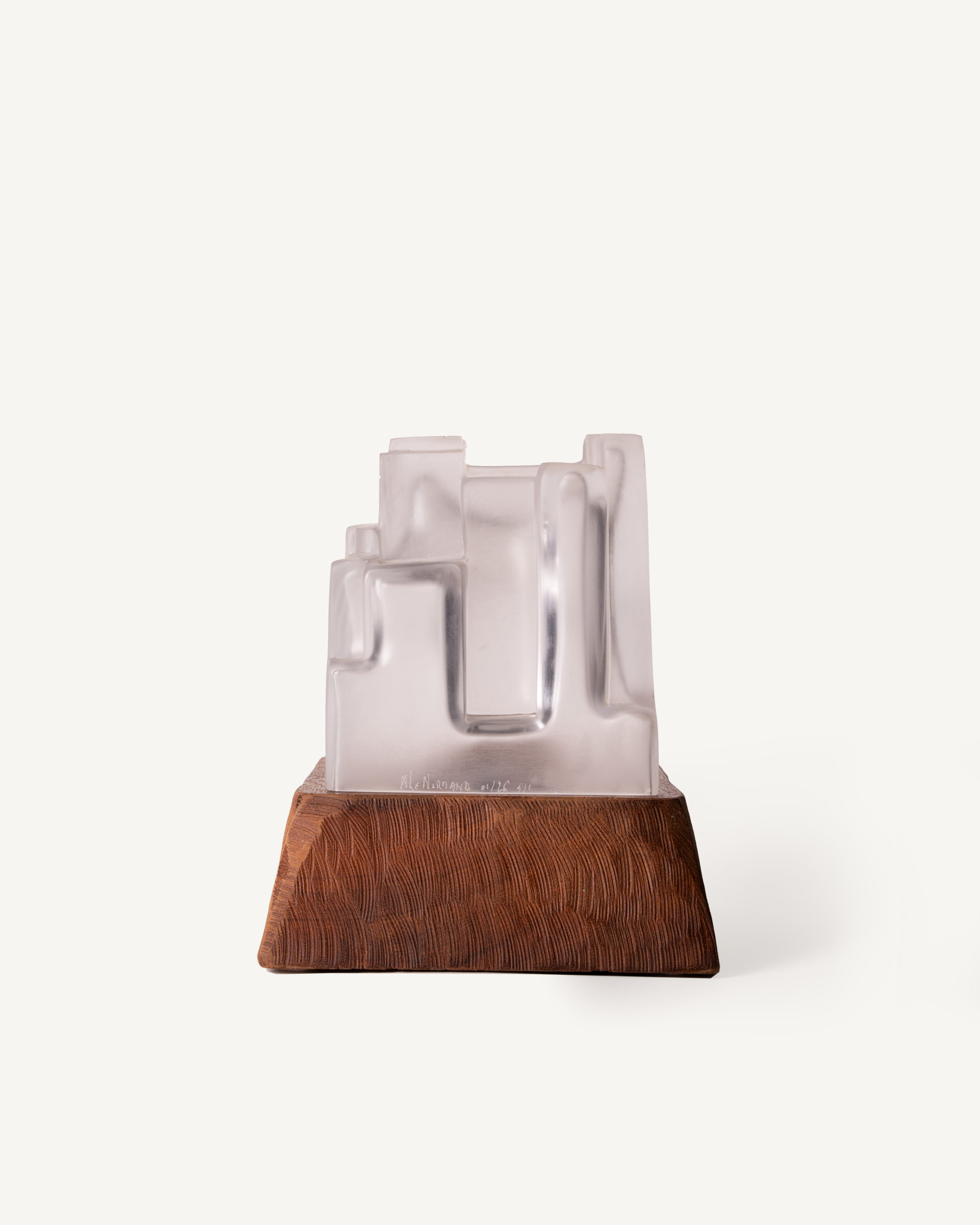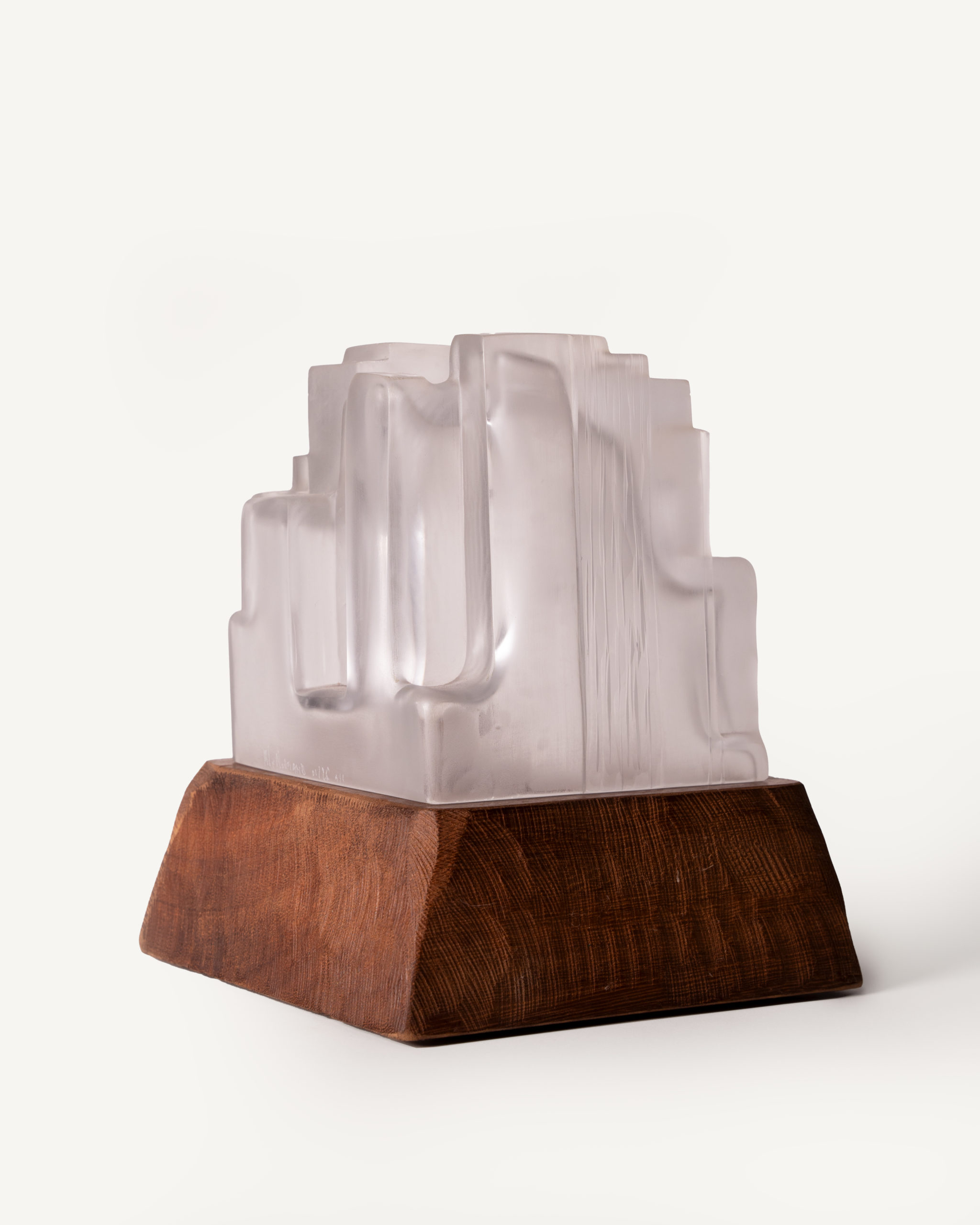 Cité 3 Sculpture lumineuse , cette nouvelle collection explore des lignes droites et tendues dans le verre soufflé. En contraste avec les rondeurs que la matière génère naturellement. L’artiste façonne chaque pièce unique en la soufflant à la canne selon la technique suédoise de l’overlay, superposant des couches de verre avant de la presser au dernier moment dans des moules uniques. Il reprend ensuite la sculpture à froid : il scie, taille et abrase la matière pour révéler toute la richesse des teintes.