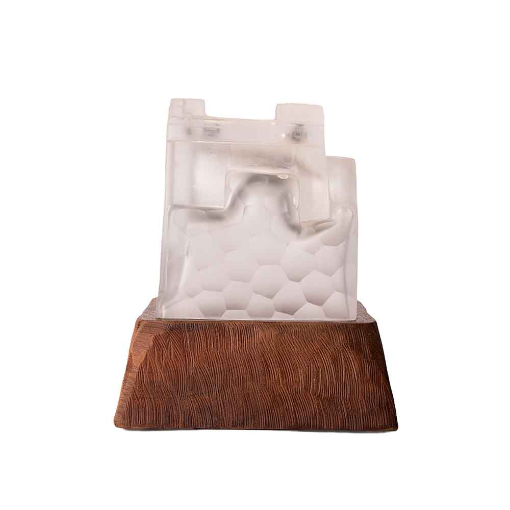 Il sculpte, cisèle, grave et imprime le verre. Matière qu’il juge capable de transformer l’irréel en objet, et nous invite à travers ses sculptures, au rêve et à l’émerveillement.
