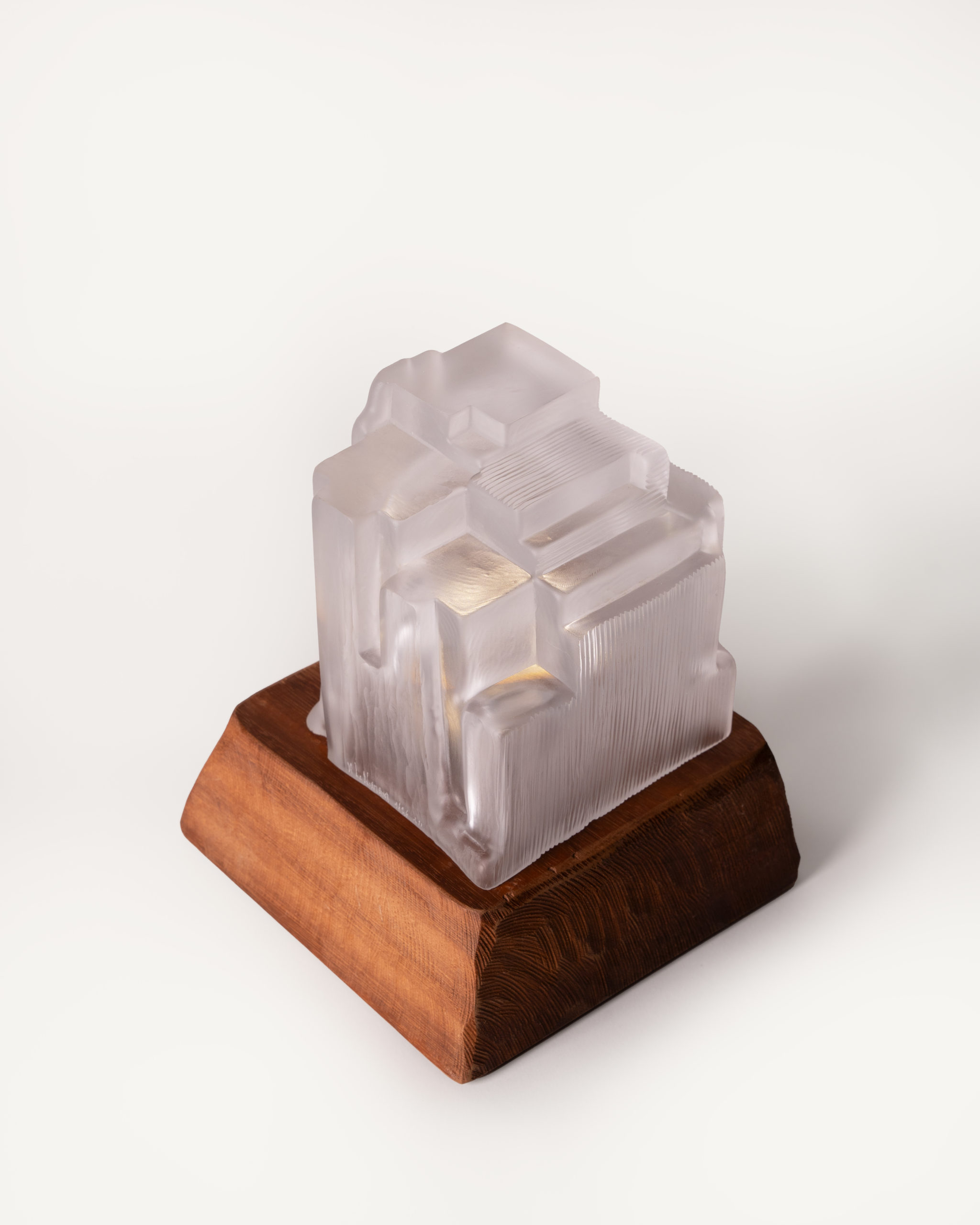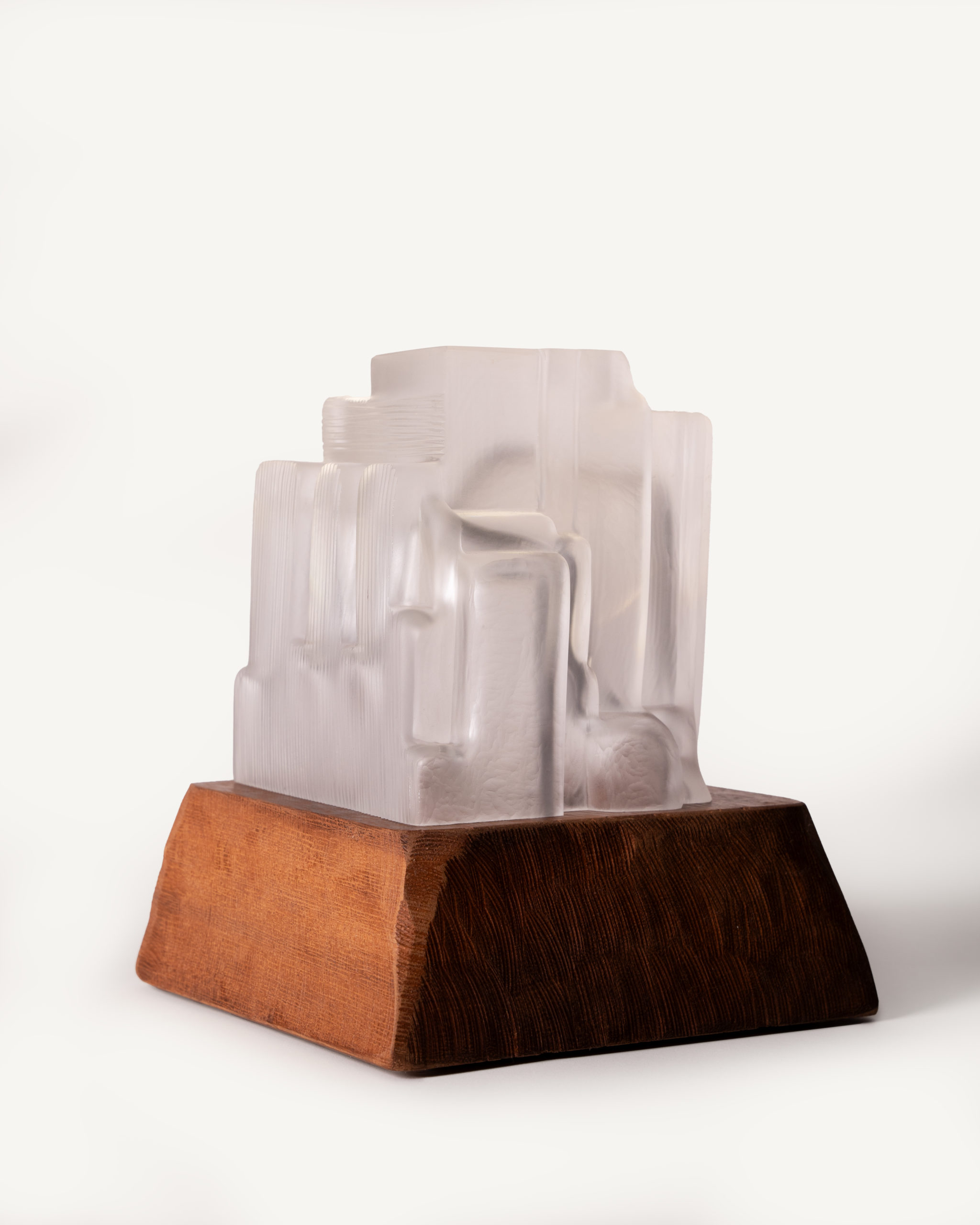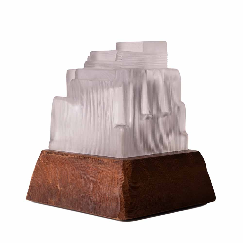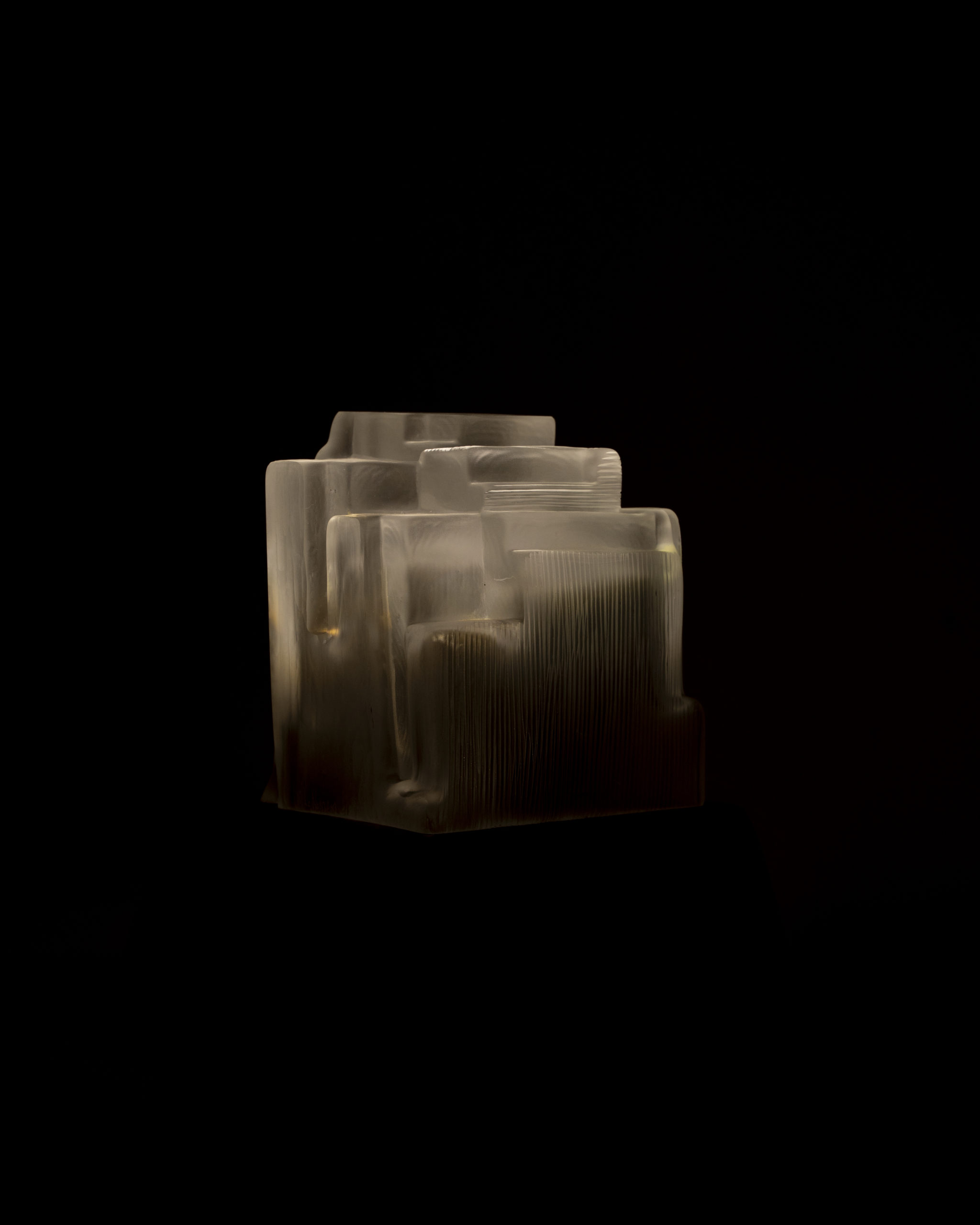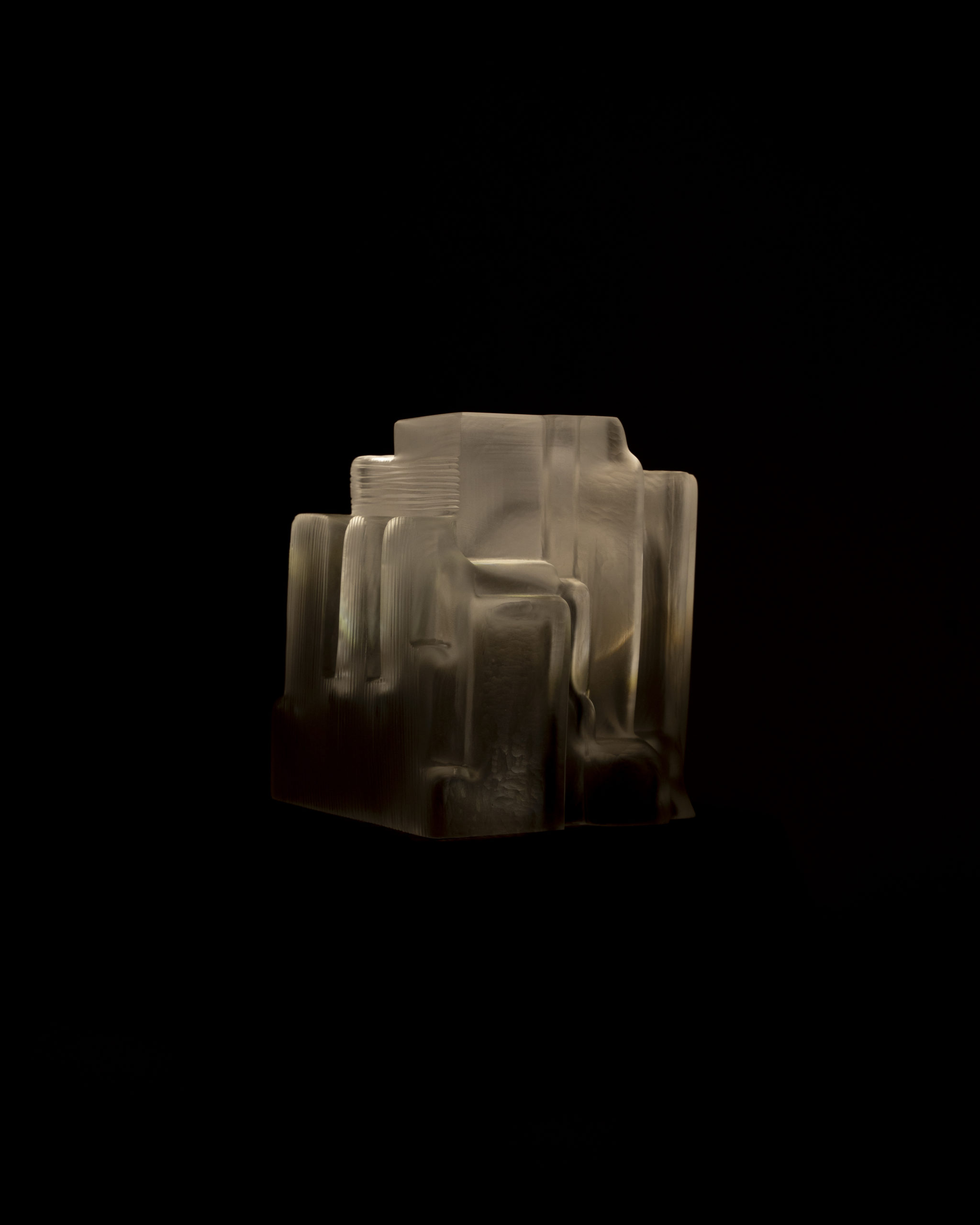 Cité 5 Sculpture lumineuse , cette nouvelle collection explore des lignes droites et tendues dans le verre soufflé. En contraste avec les rondeurs que la matière génère naturellement. L’artiste façonne chaque pièce unique en la soufflant à la canne selon la technique suédoise de l’overlay, superposant des couches de verre avant de la presser au dernier moment dans des moules uniques. Il reprend ensuite la sculpture à froid : il scie, taille et abrase la matière pour révéler toute la richesse des teintes.