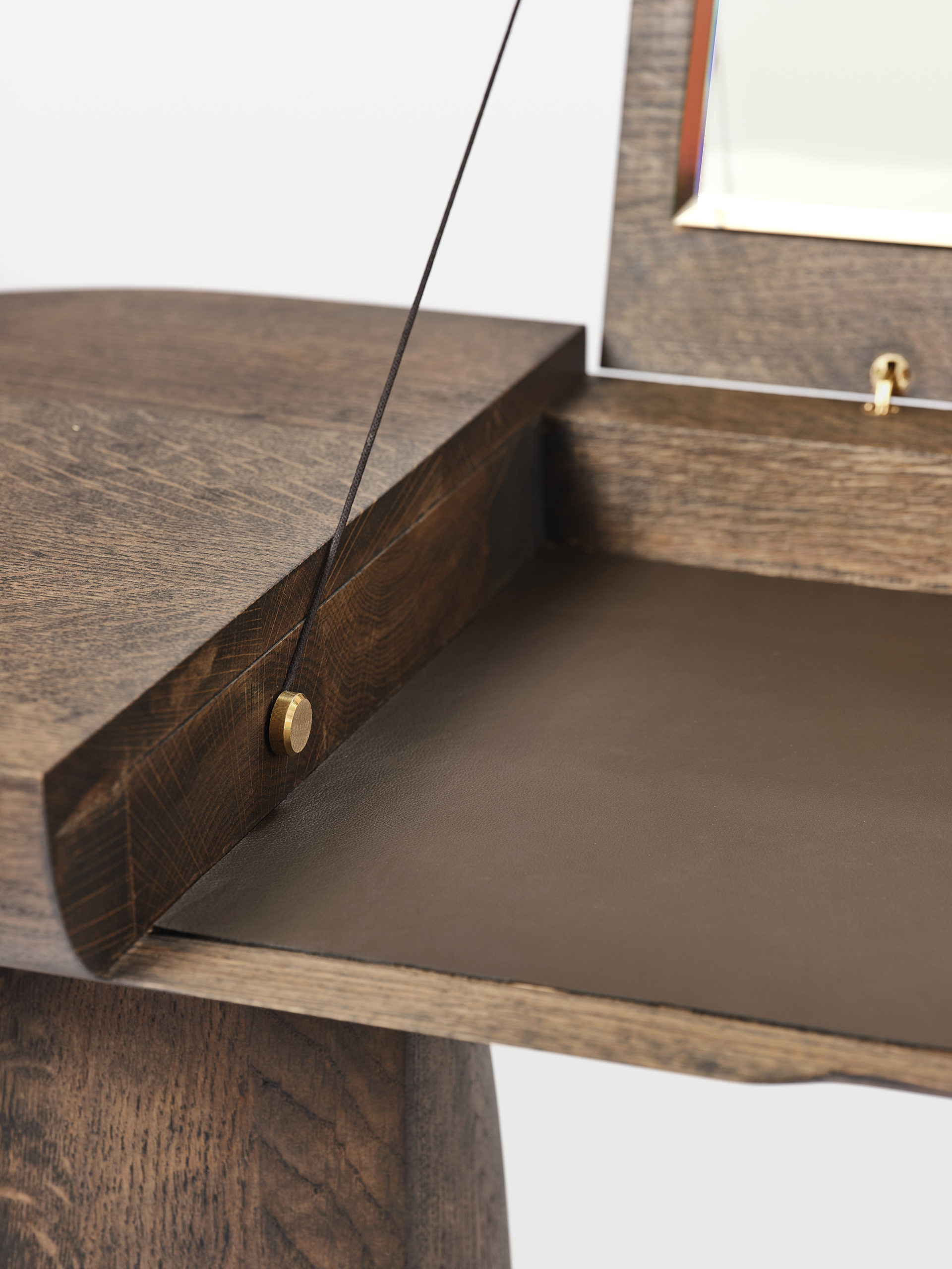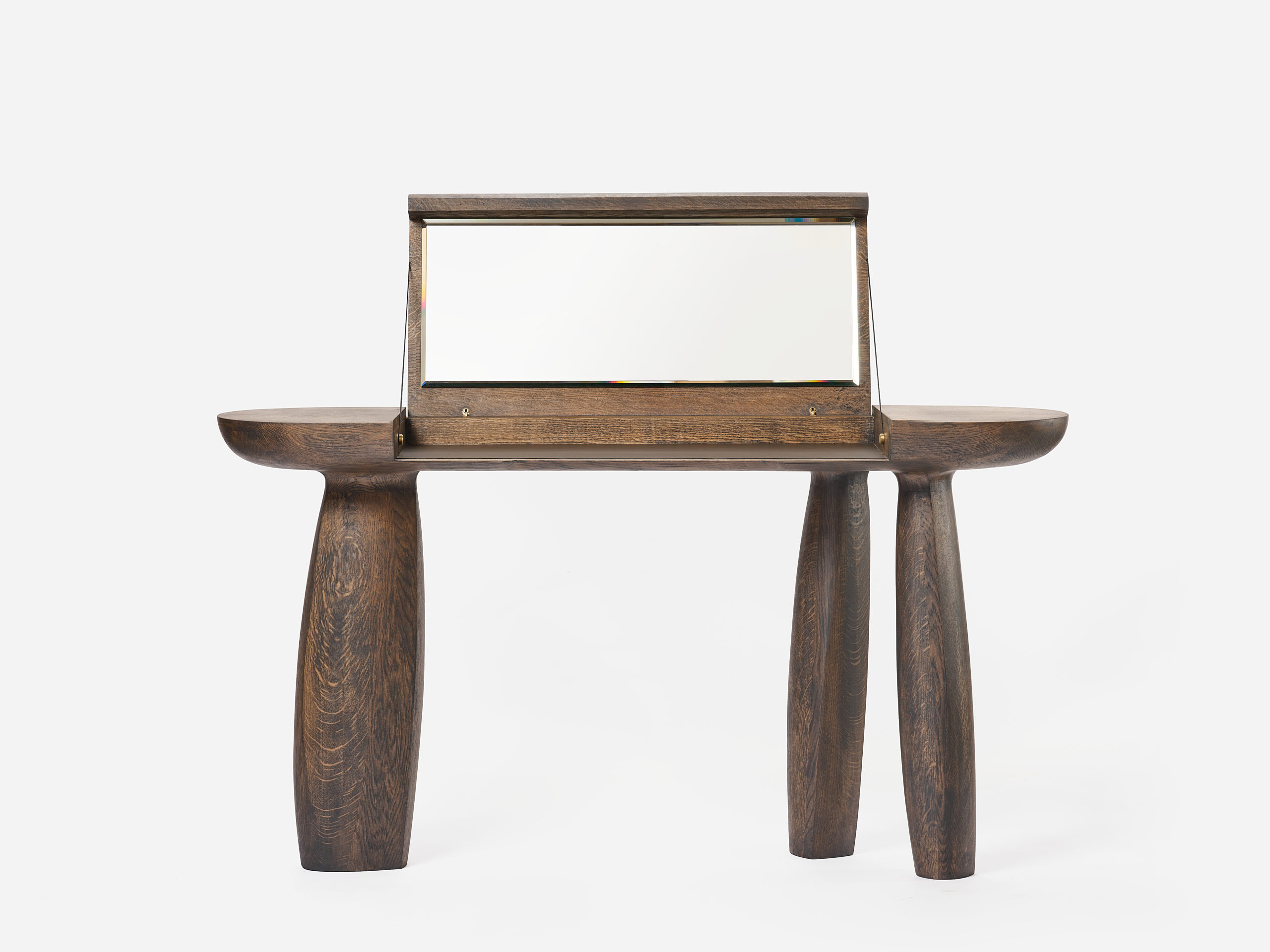 La coiffeuse Erosion en chêne naturel matte est une exclusivité pour la galerie Anne Jacquemin Sablon en édition limitée.