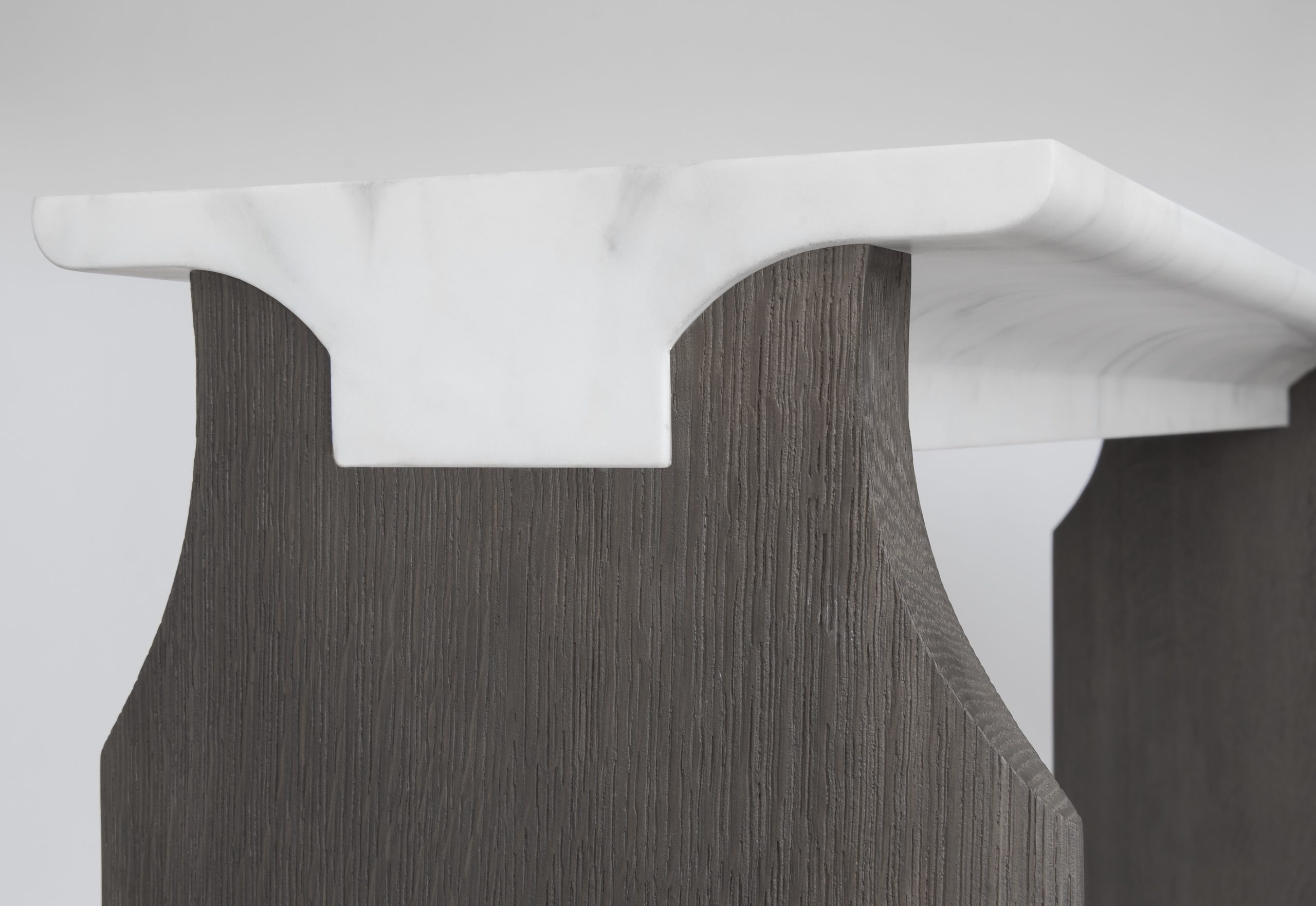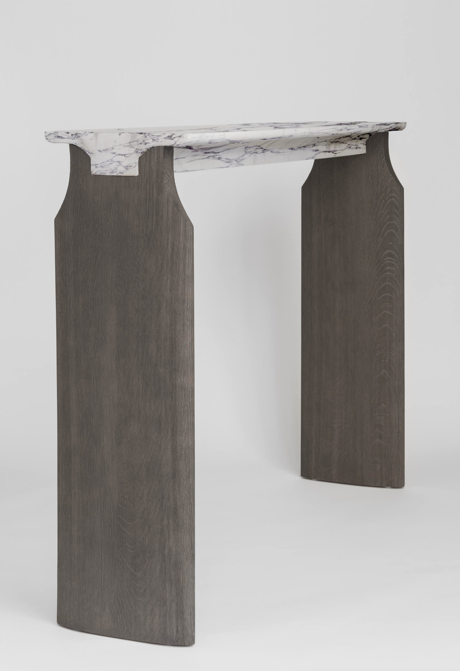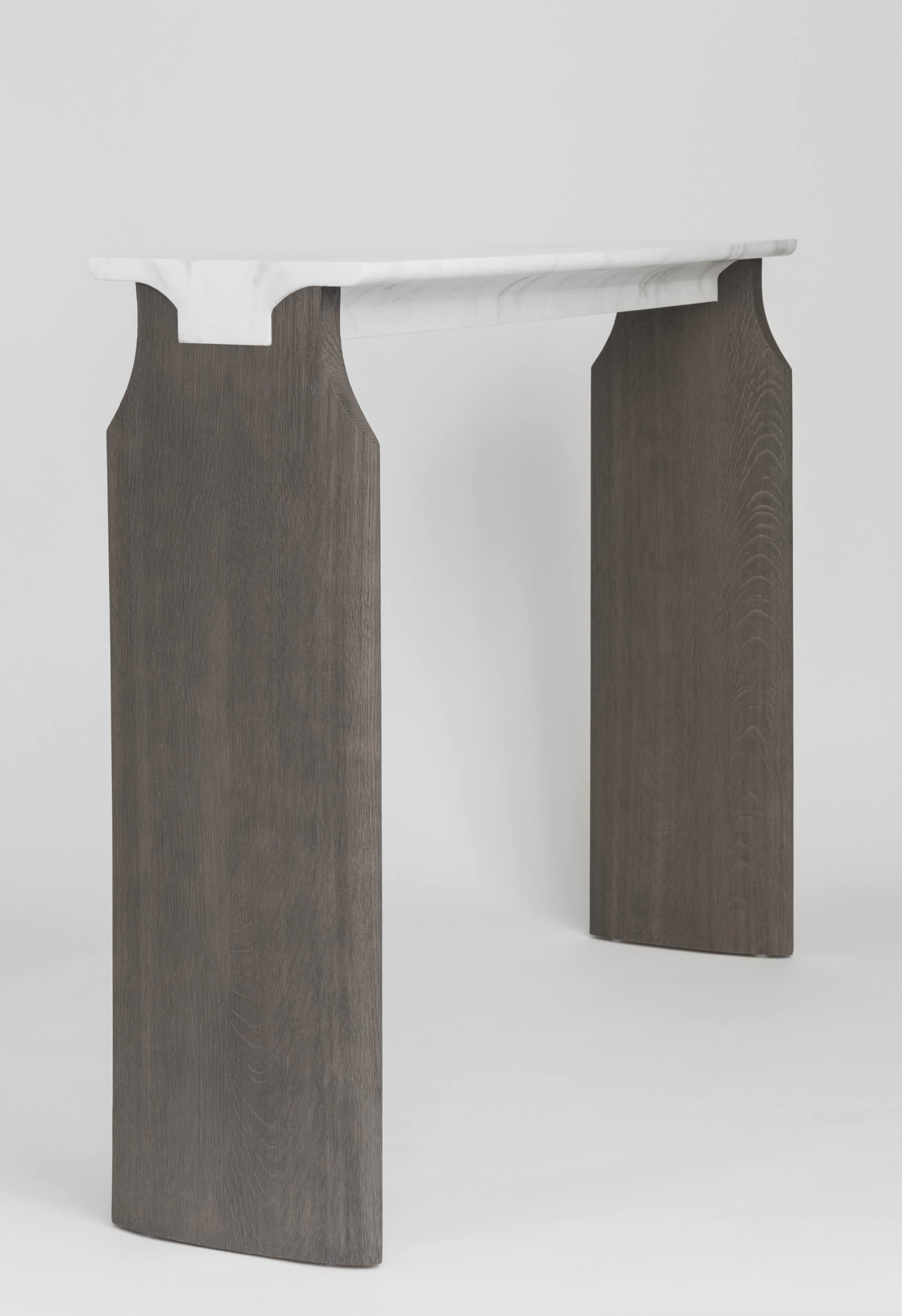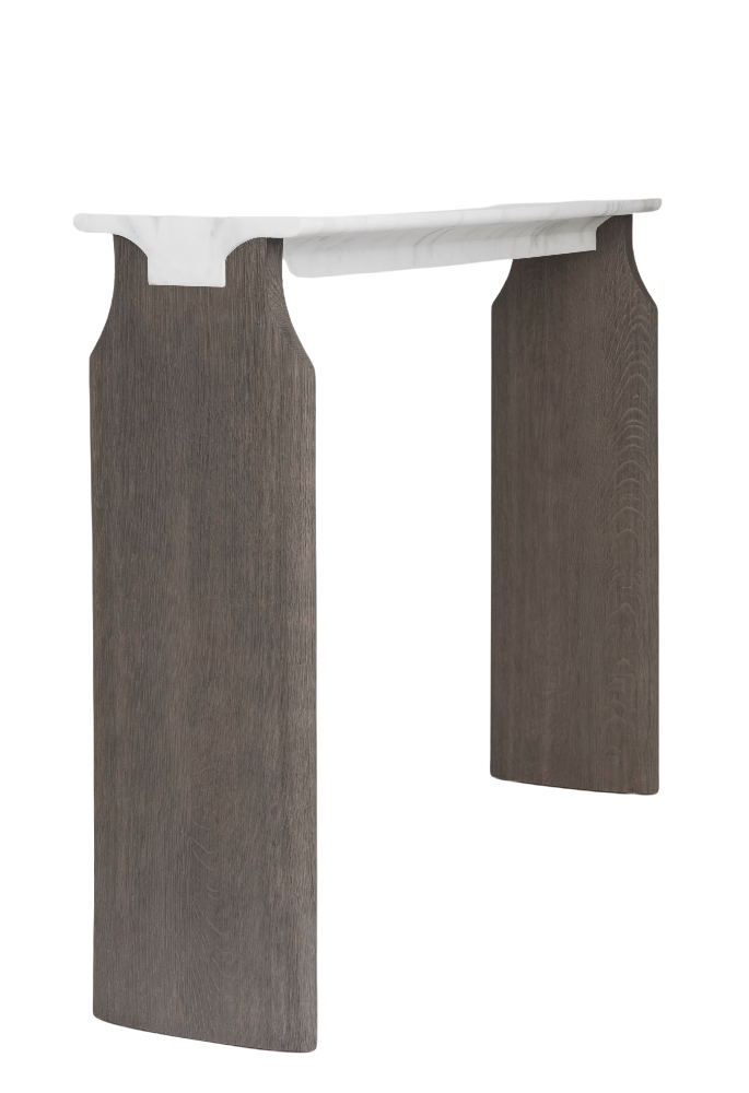 La Console Jay est dessinée par le collectif Atelier Linné. son plâteau est en marbre et son piètement est en chêne brossé.