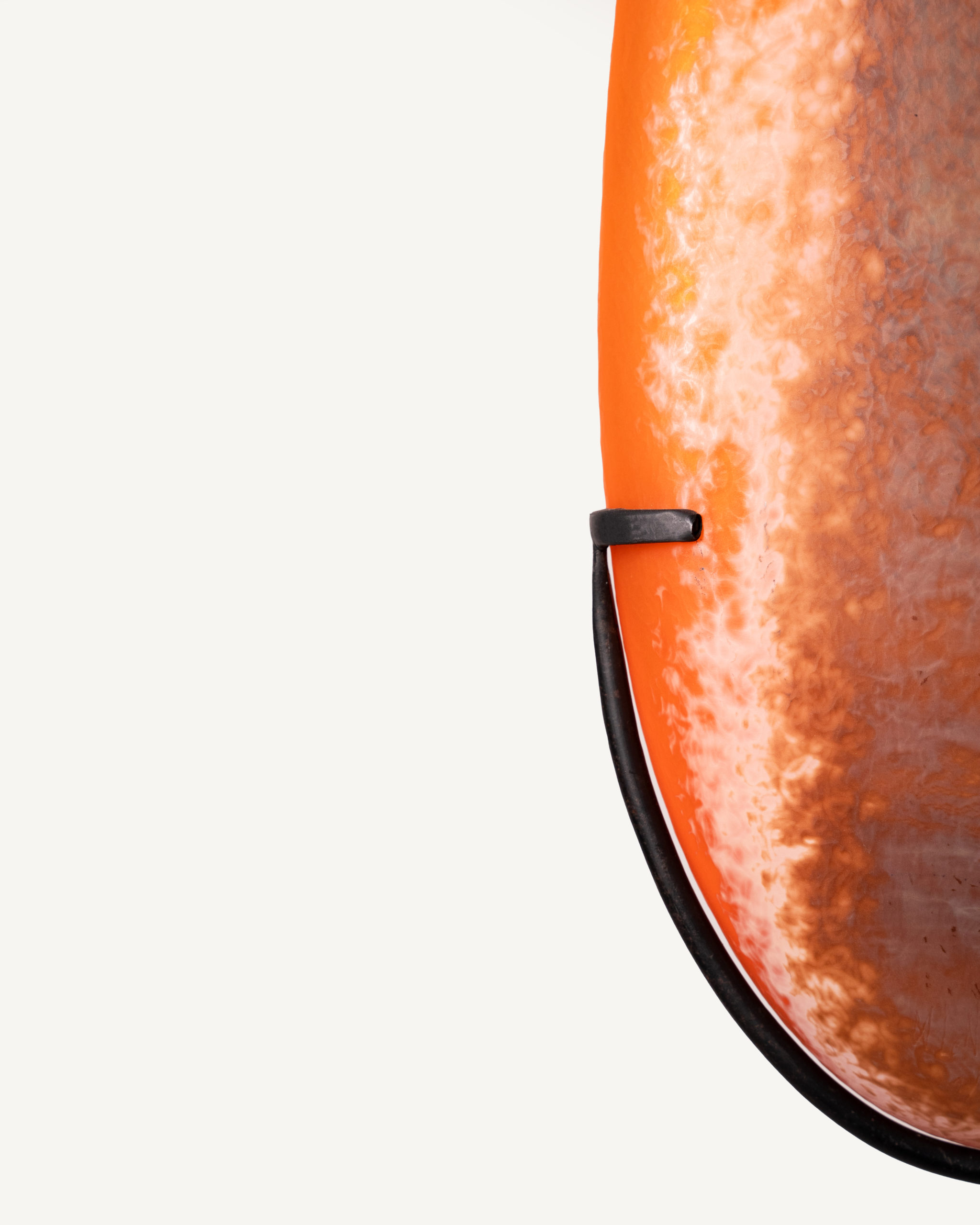 Verre soufflé à la canne, en overlay. Xavier le Normand dévoile une fois encore une série de pièces où la couleur raconte l’infini beauté du ciel.