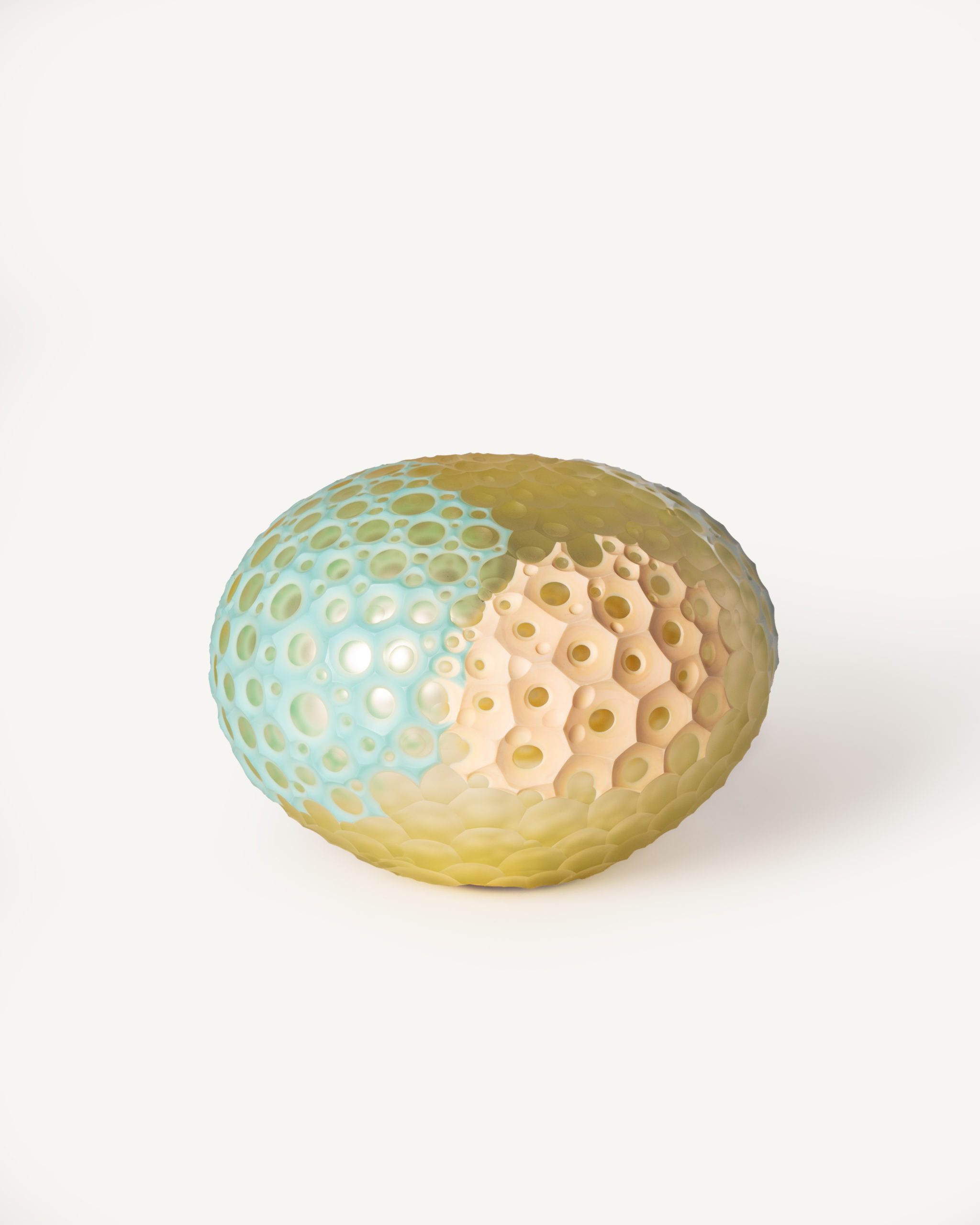 En 2021, il s’installe en Dordogne dans un vaste atelier où il développe une identité artistique fondée sur le verre soufflé et la taille à froid. Il puise son inspiration dans la nature, qu’il considère comme une source de perfection et d’humilité. Son oeuvre, profondément liée au cosmos, aux fonds marins et aux phénomènes lumineux , cherche à exprimer le mouvement de la vie et la fragilité de l’enfance. Il sculpte, cisèle, grave et imprime le verre, matière qu’il juge capable de transformer l’iréel en objet, et nous invite à travers ses sculptures, au rêve et à l’émerveillement.