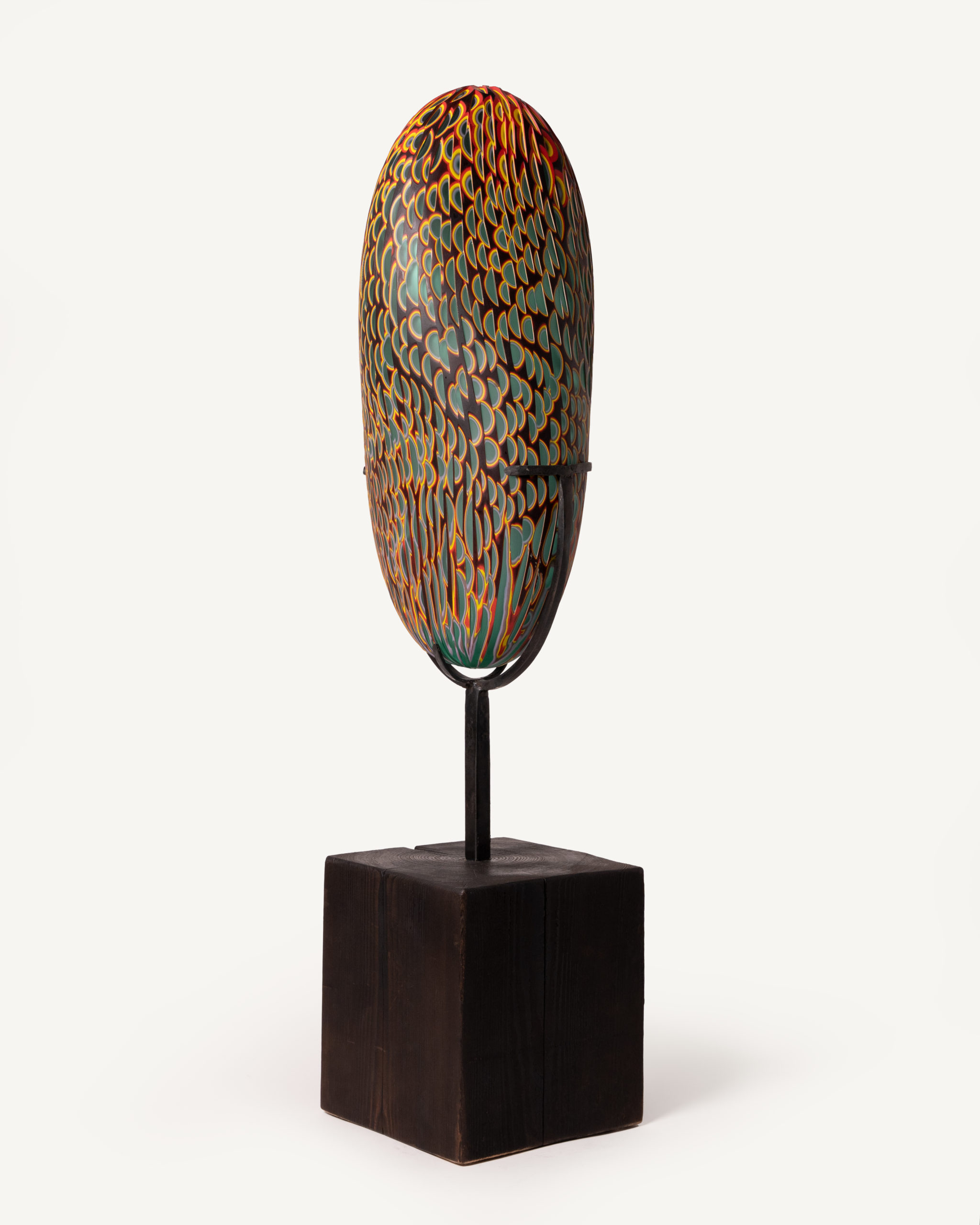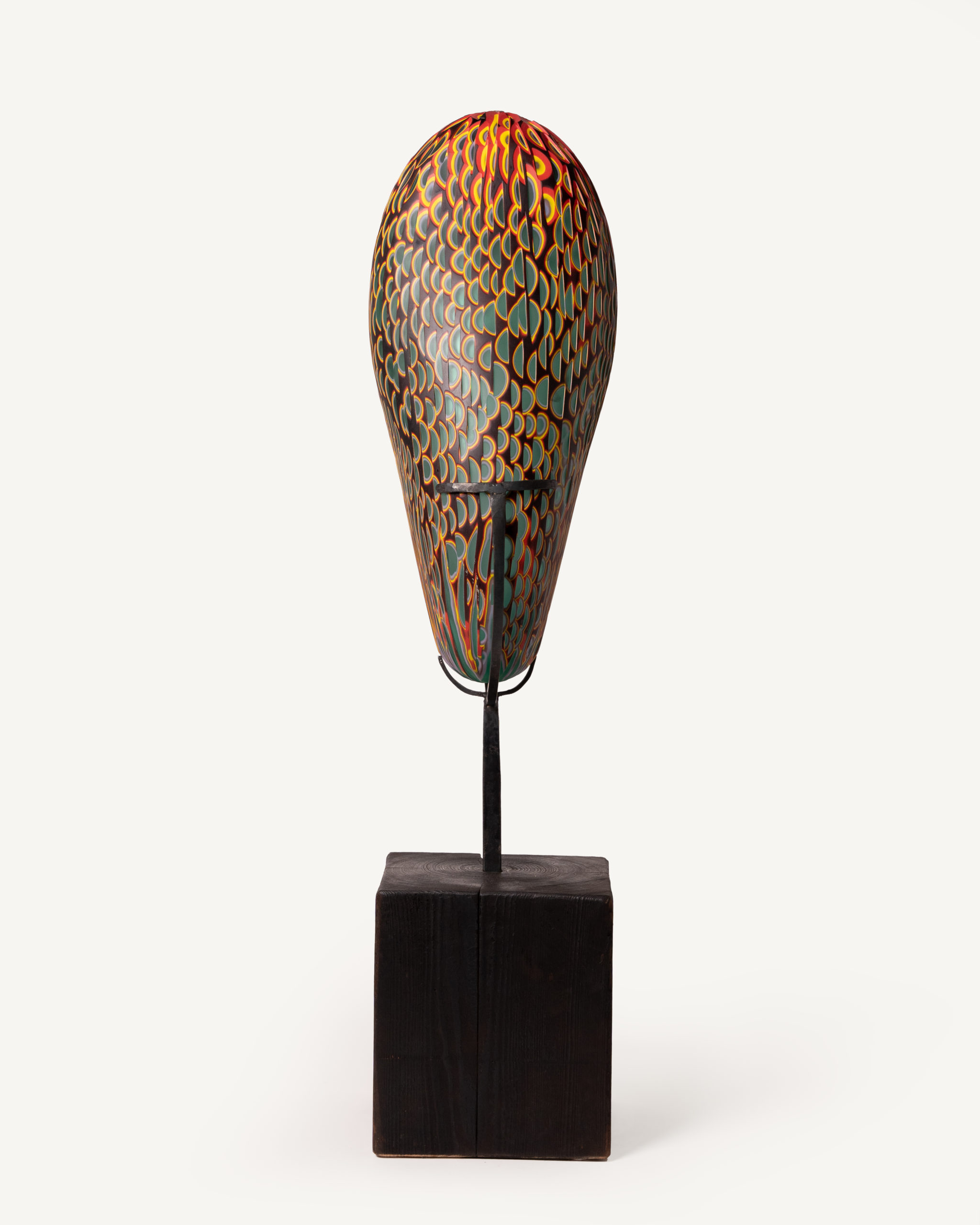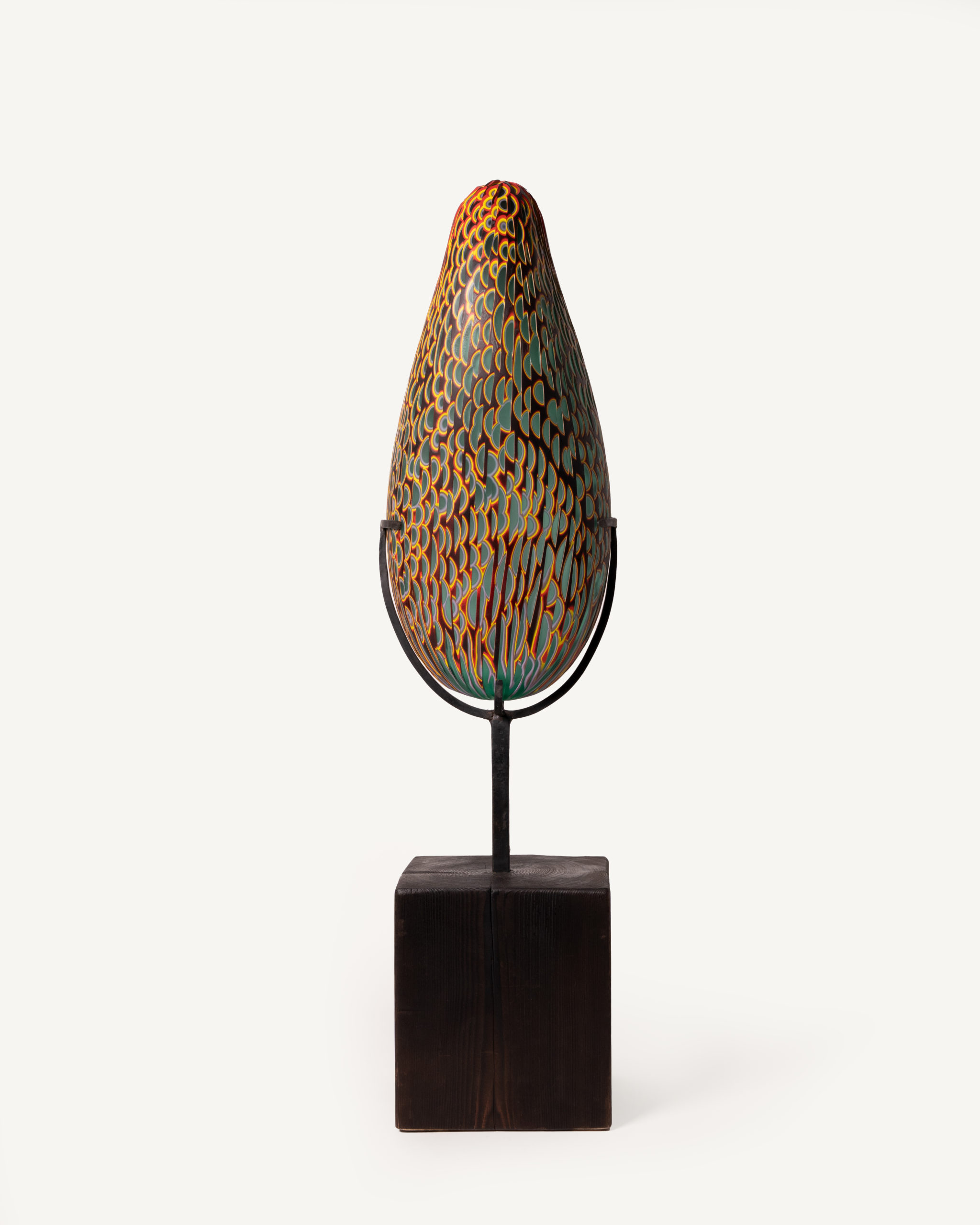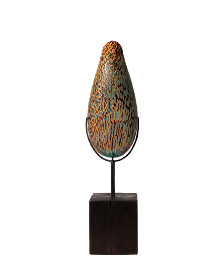 qu’il a décidé d’évoquer le féminin sacré. Une quête de pureté, une quêted’infini.Chaque pièce est soufflée à la canne en overlay puis taillée à la main.