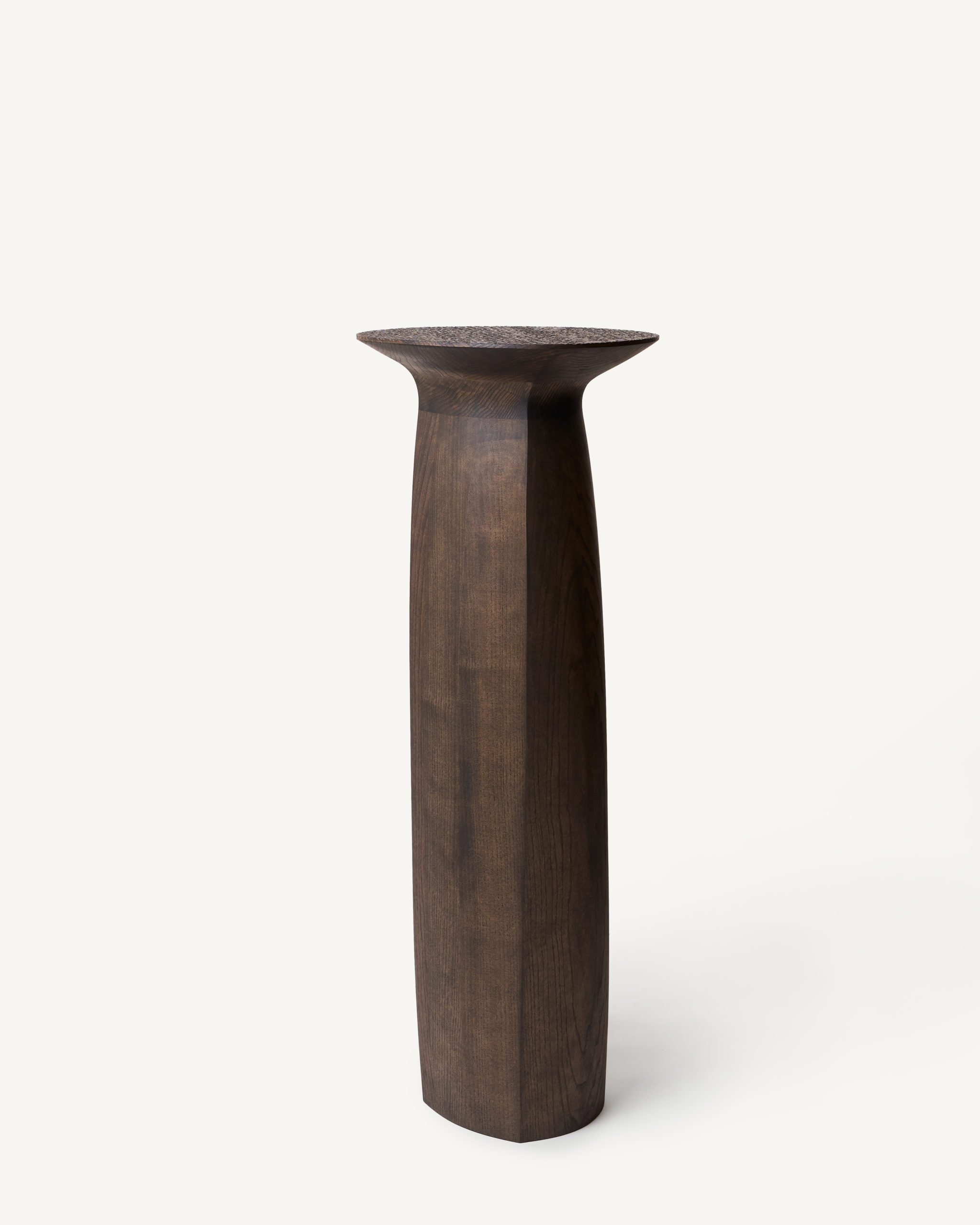 La stèle Erosion en frêne fumée est une exclusivité pour la galerie Anne Jacquemin Sablon.