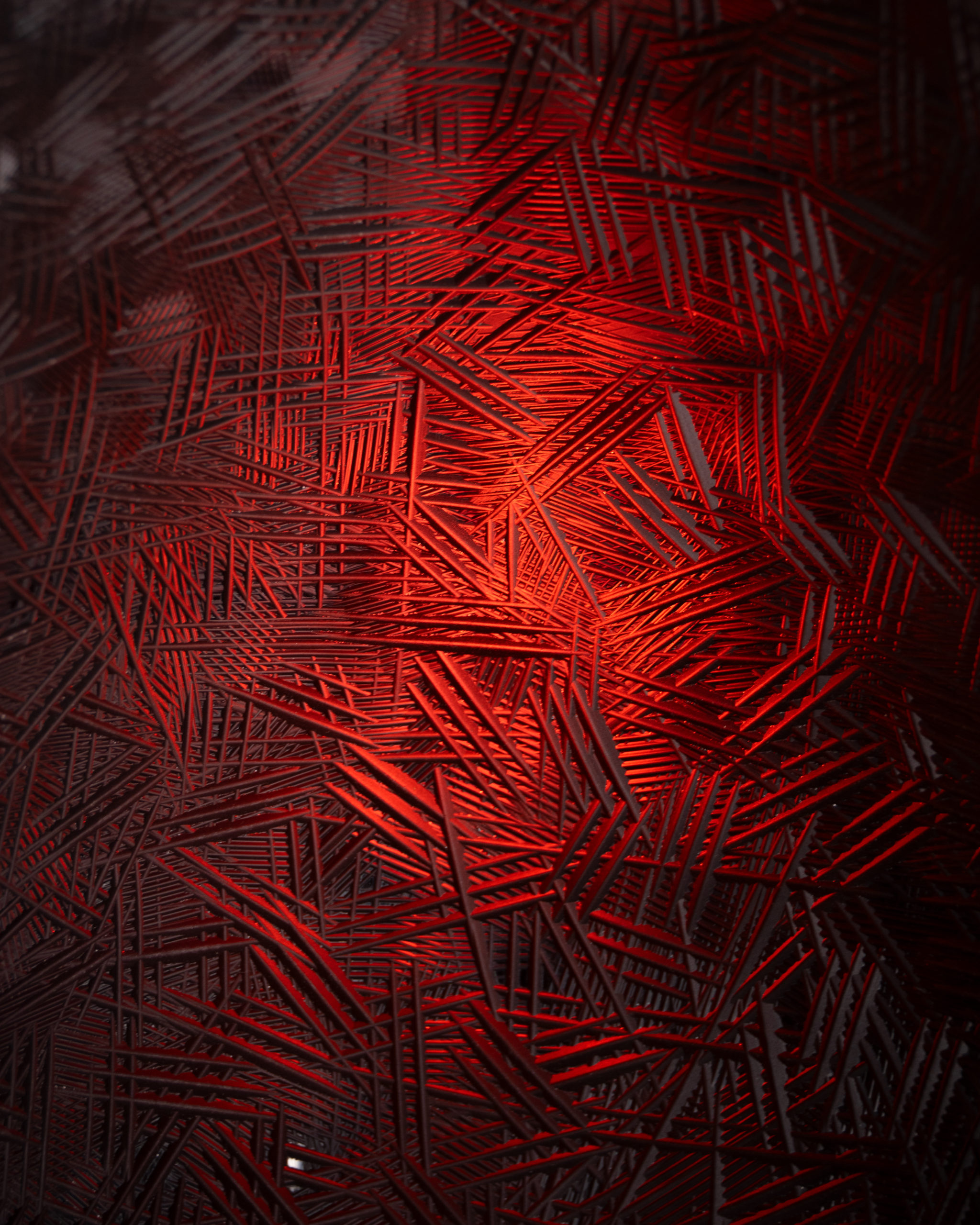 doute L’ADN humain qu’il a décidé d’évoquer le féminin sacré. Une quête de pureté, une quête d’infini. Chaque pièce est soufflée à la canne en overlay. Technique suédoise caractérisée par une succession de couches de verre, puis taillée à la main.
